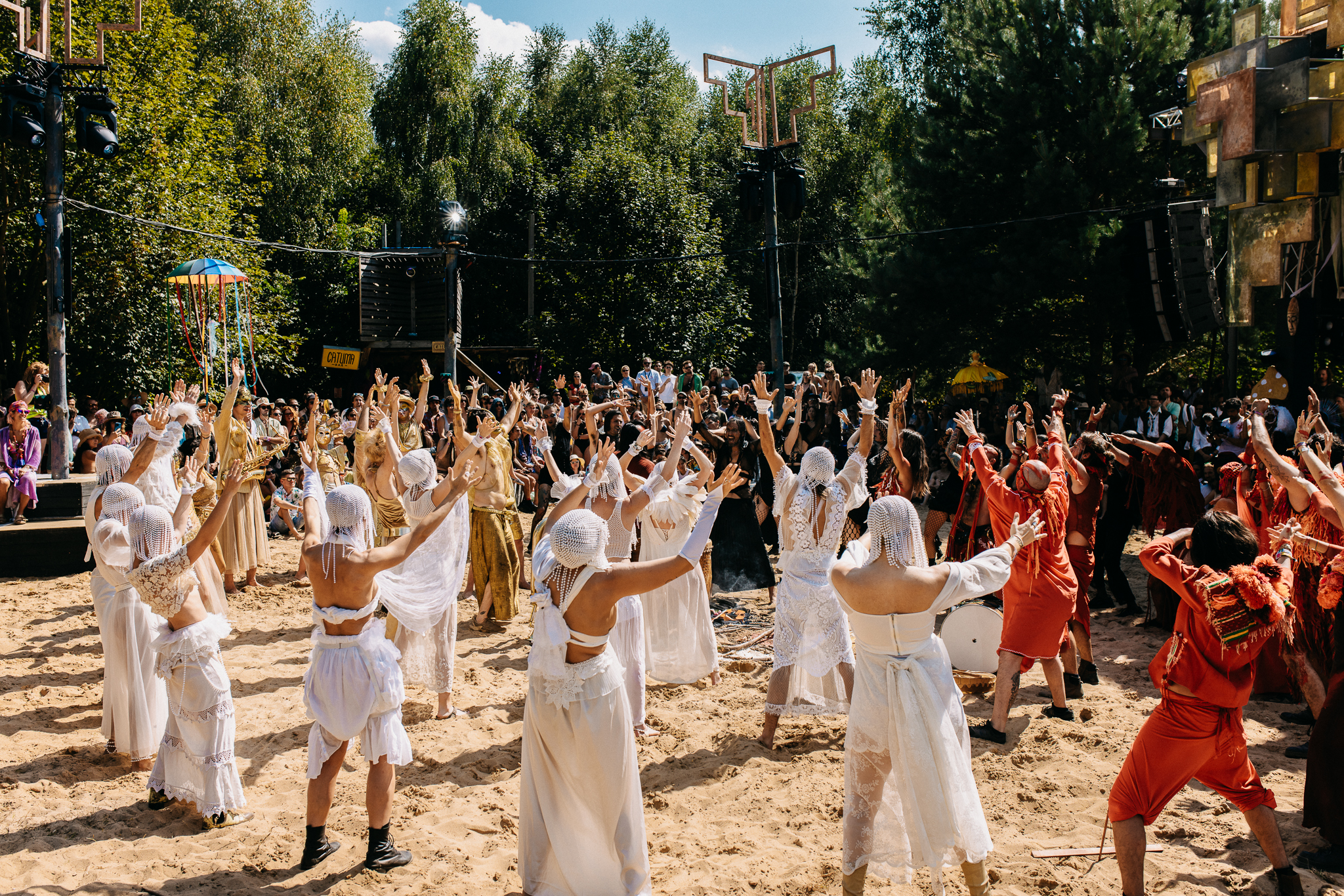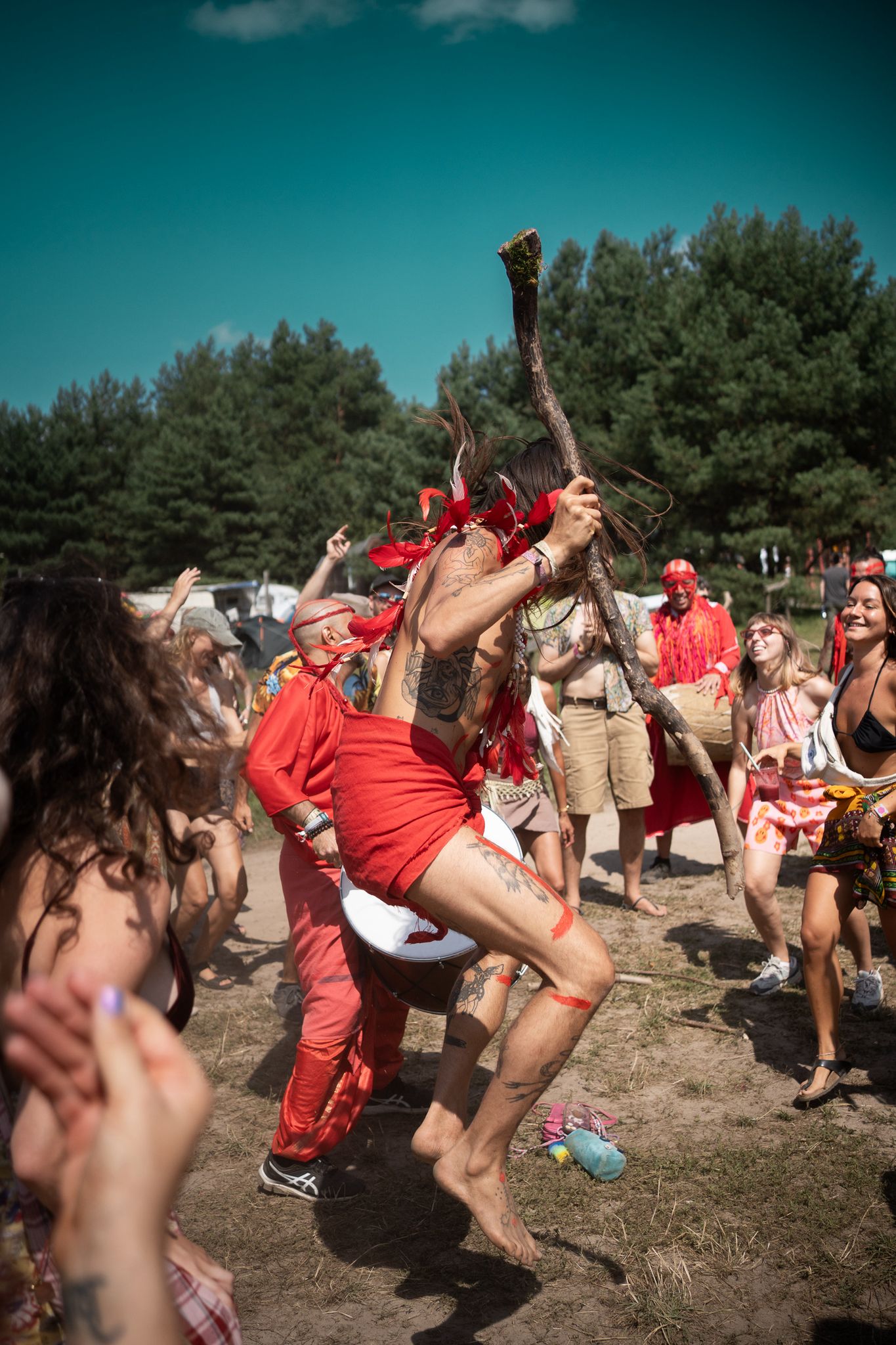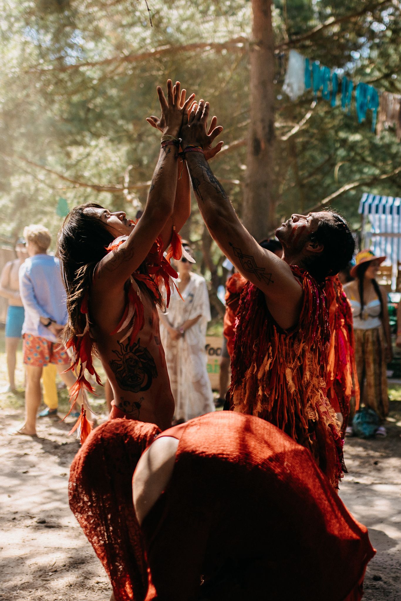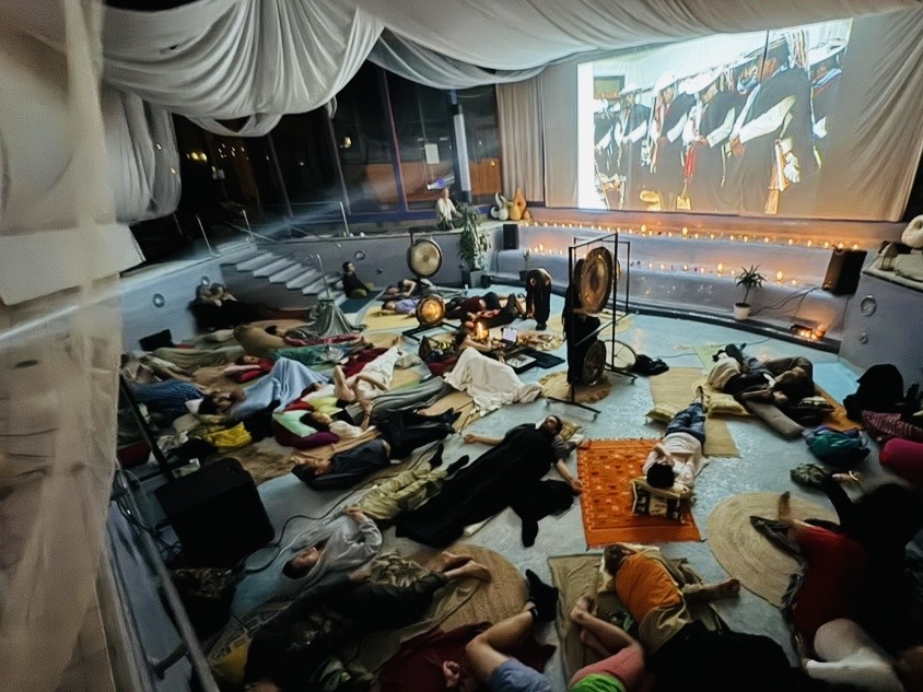 Through dance, music, improvisation, visual and symbolic art and installations, it creates a collective healing experience.